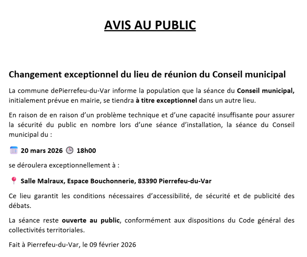 Accueil » Actualités » Infos mairie » Conseil municipal : changement exceptionnel de lieu