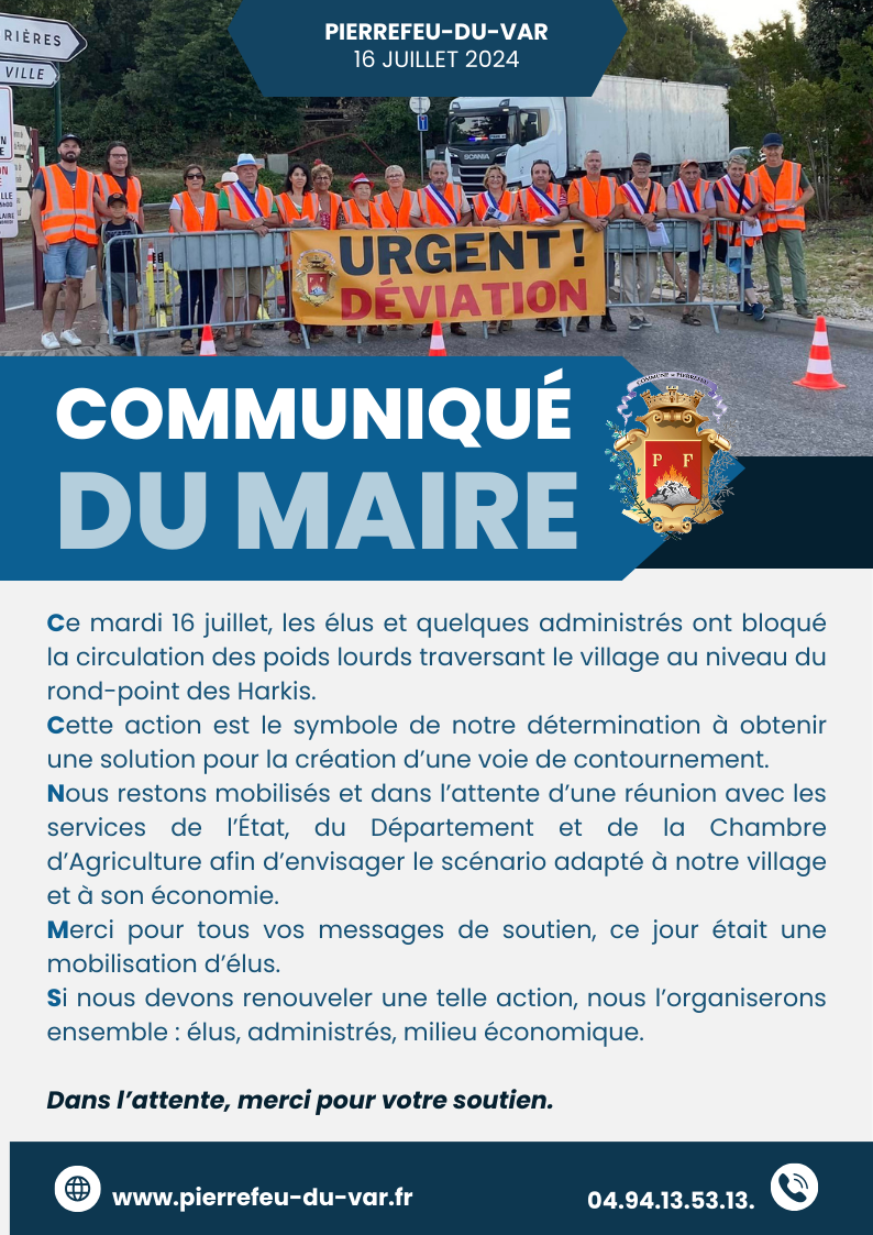 DÉVIATION : COMMUNIQUÉ DE M. LE MAIRE