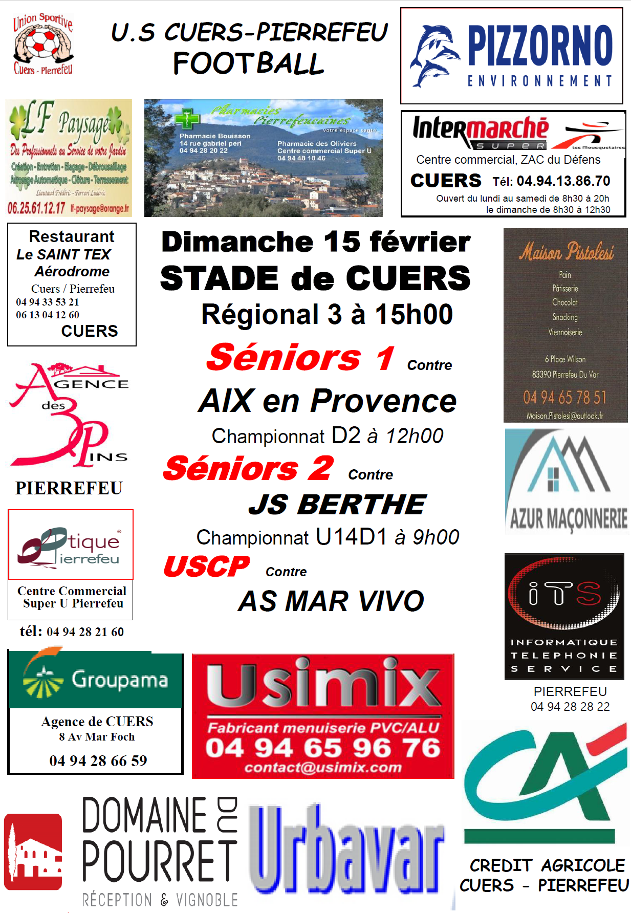 Venez nombreux les encourager au stade Paul ROCOFORT de Cuers.