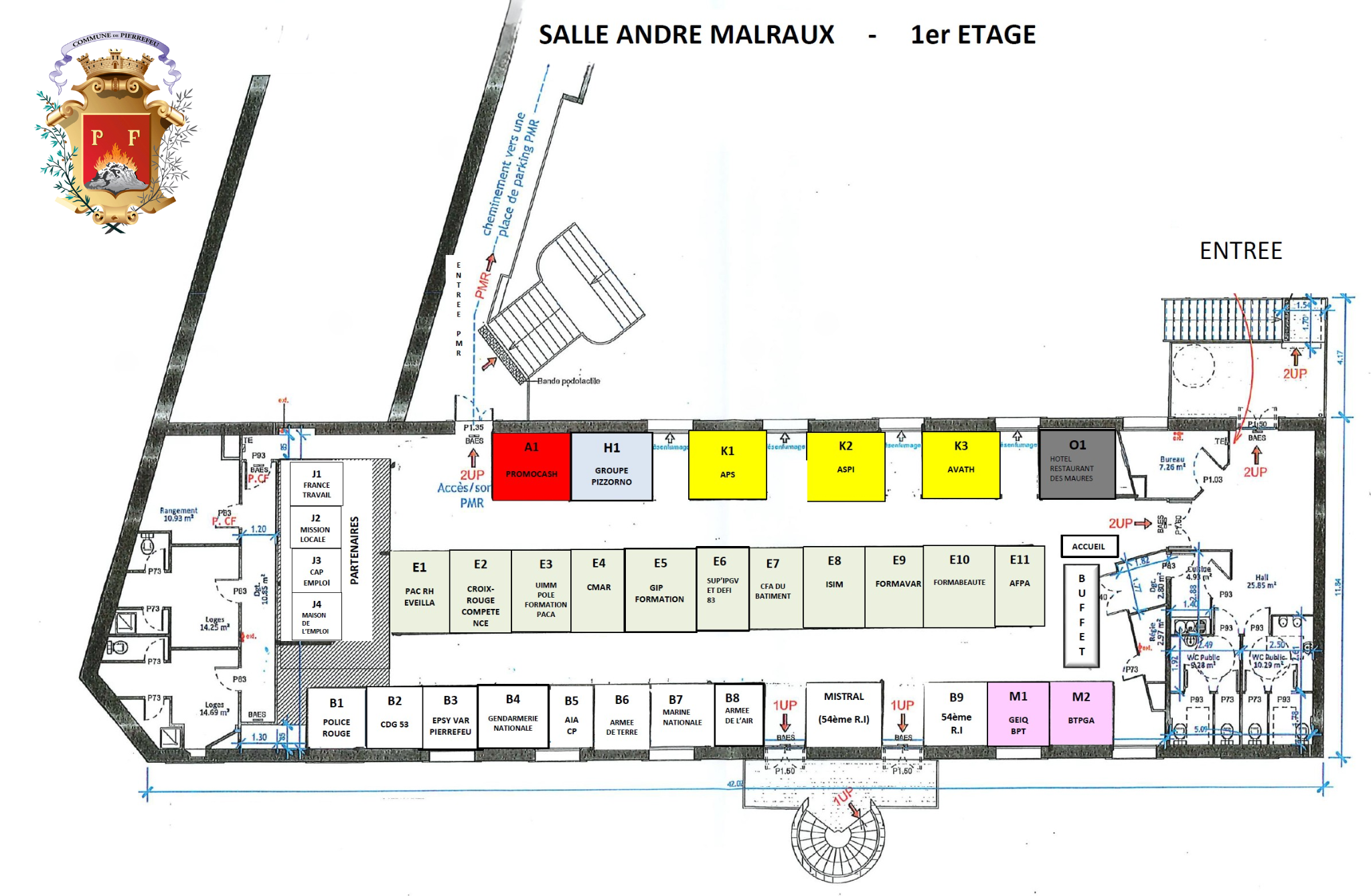 Le forum de l’emploi se tiendra Espace Bouchonnerie dans les salles André MALRAUX et des Tonneaux, dont voici les plans :