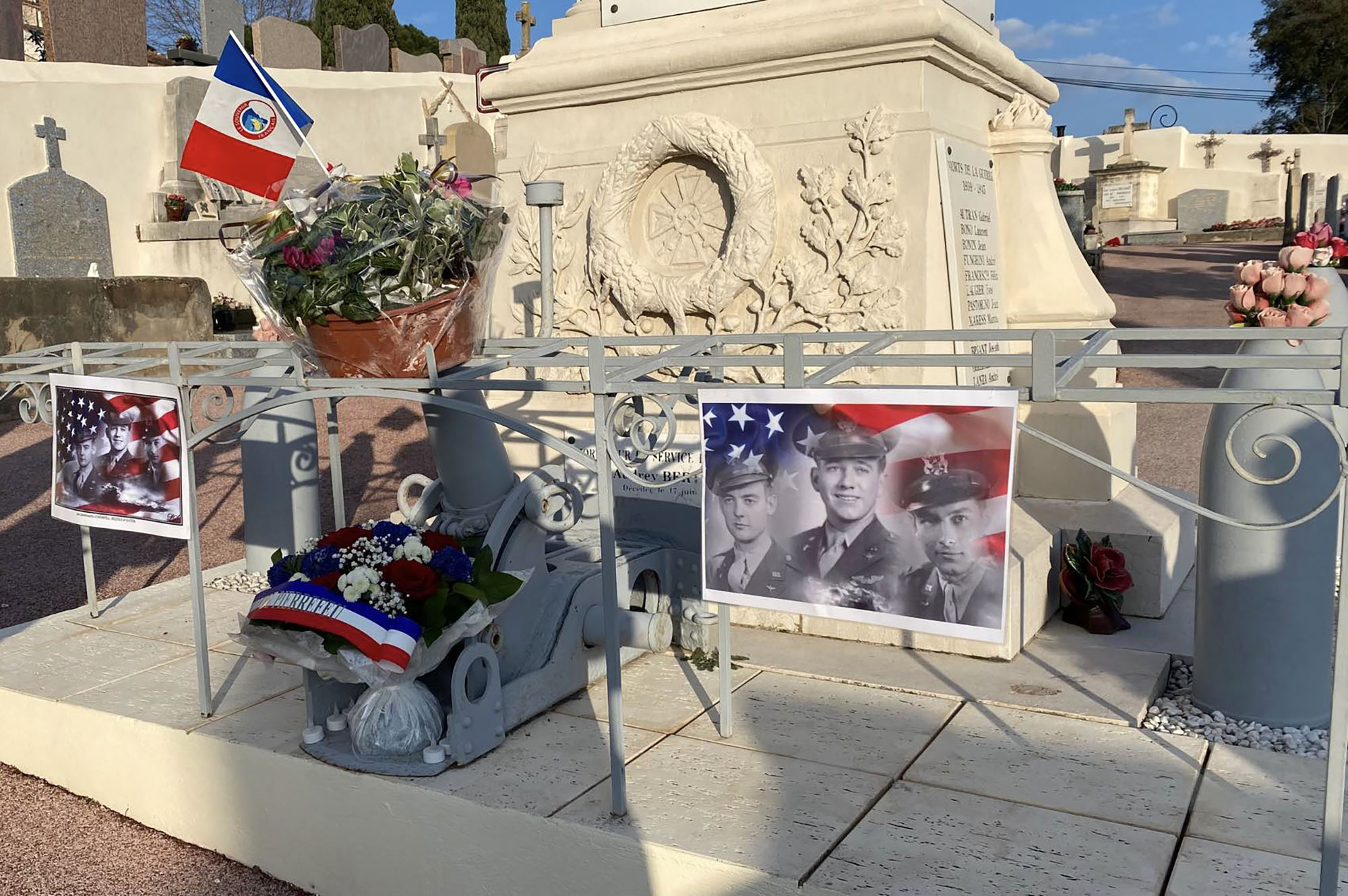 Suite à la découverte d’un débris d’avion par Monsieur Steve LELEU et son acharnement à reconstituer l’histoire, une stèle était érigée square Du Plessis de Grenedan en aout 2018, en hommage à ces trois aviateurs.