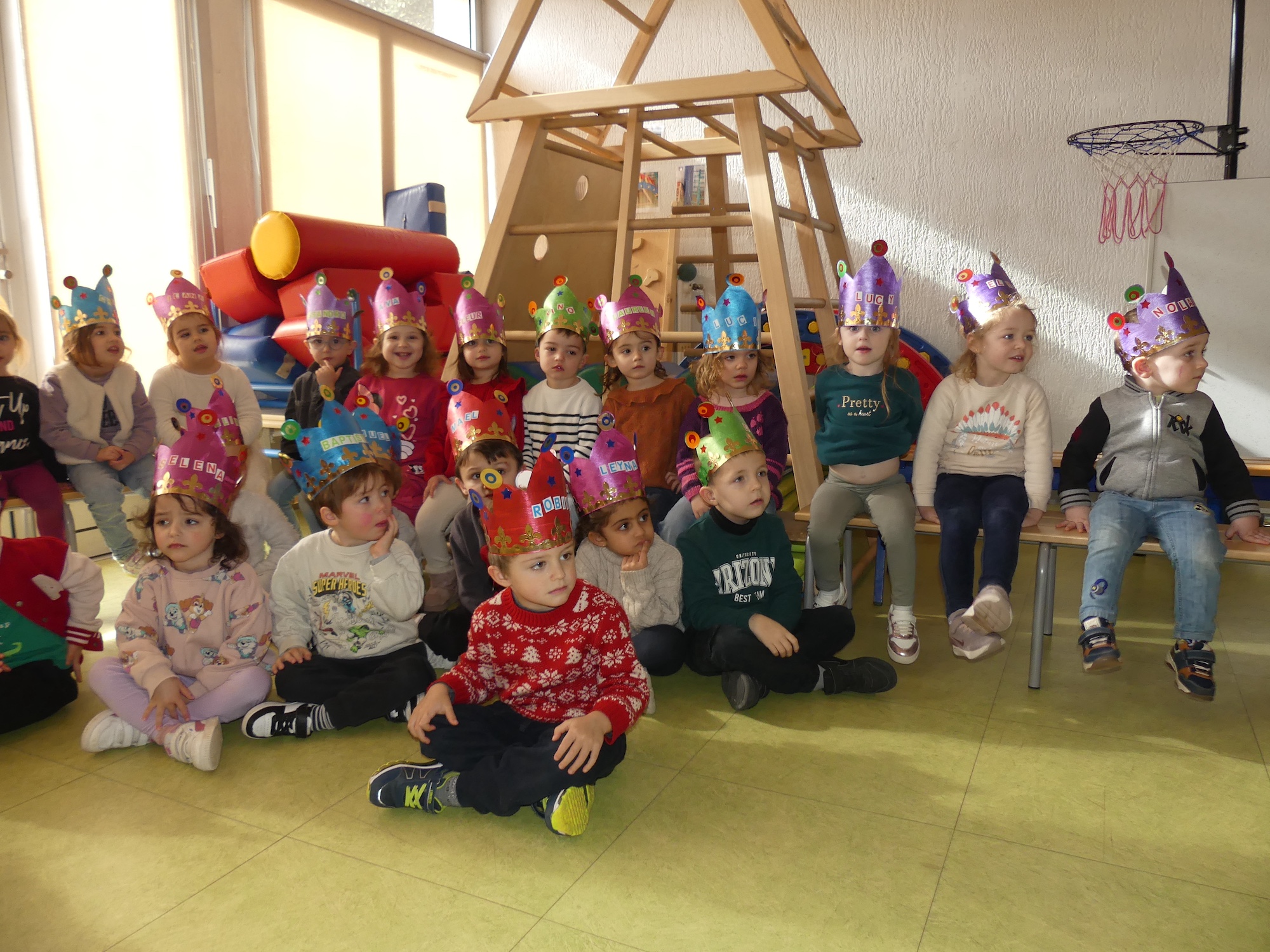 Cette année, avec une météo capricieuse, les enfants sont restés à l’intérieur pour chanter et défiler, classe par classe.