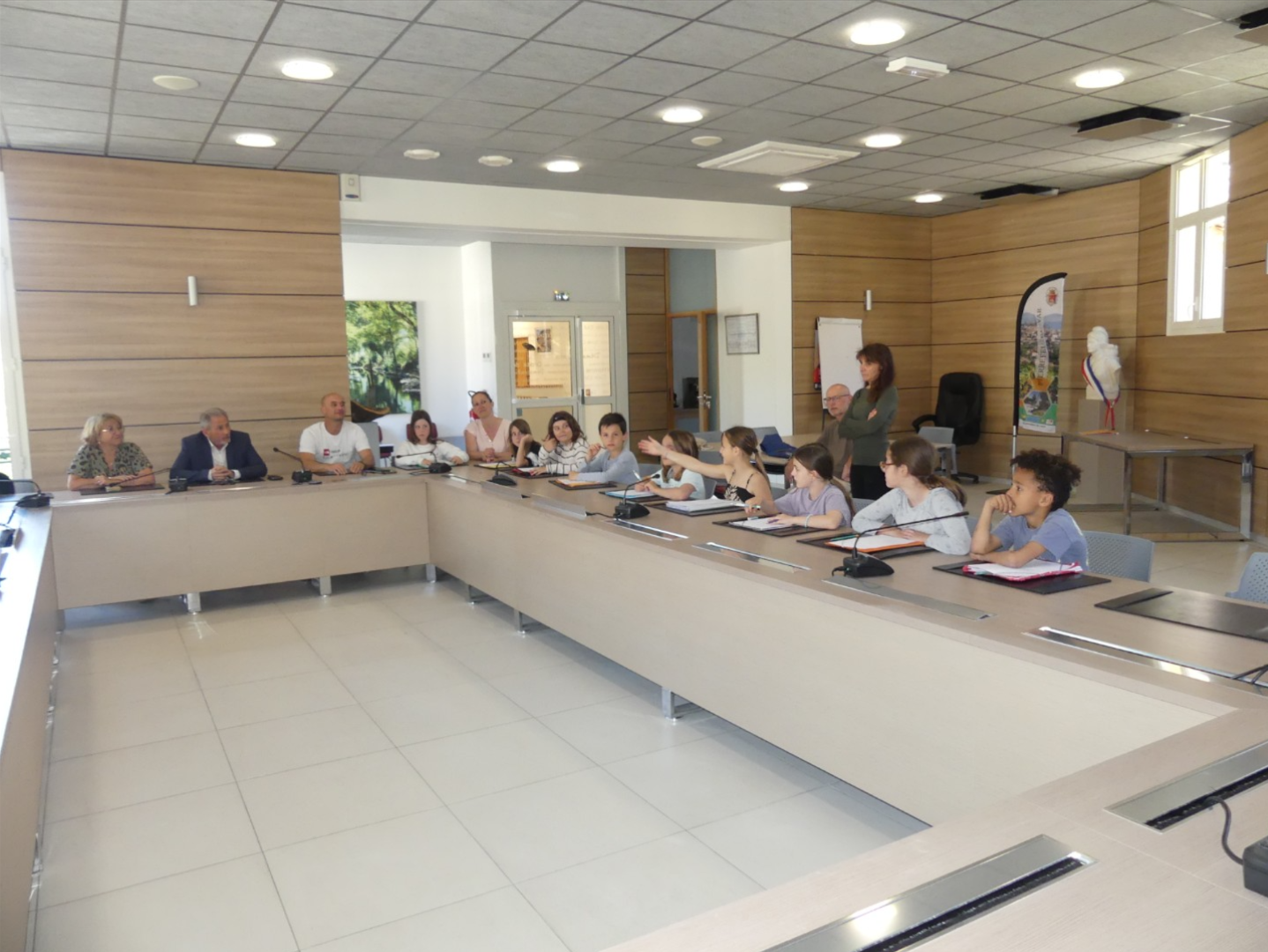 Installés autour de la grande table, les élèves ont découvert le fonctionnement d’une mairie et le rôle des élus.