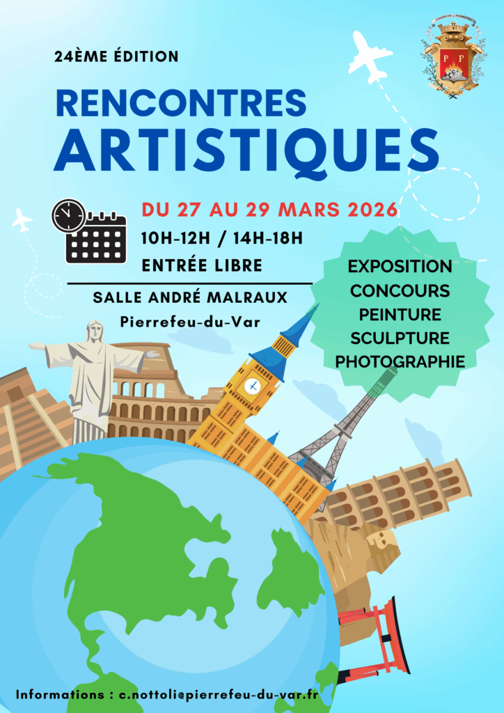 Un concours de dessin pour les enfants de l’école élémentaire est organisé dans le cadre des Rencontres Artistiques. Le concours aura lieu le samedi 28 mars 2026 à 14h, salle André Malraux, Espace Bouchonnerie. Renseignements et inscriptions auprès du service culturel : c.nottoli@pierrefeu-du-var.fr