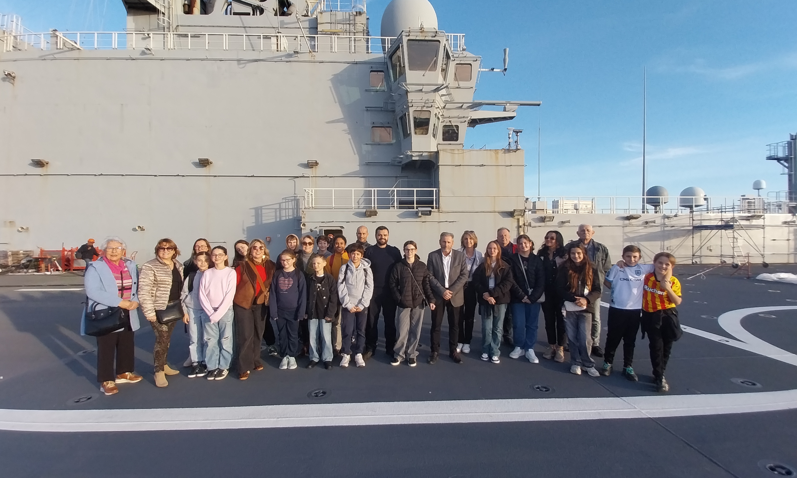 Mercredi 29 janvier après-midi, 15 enfants du Conseil Municipal des Jeunes et de l’Espace Jeunes de Pierrefeu, accompagnés de Monsieur le Maire, des élus de la commission du CMJ et des membres du personnel de la mairie ont été accueillis par Monsieur LAMEYSE Matéo, Officier Chargé de la Communication et des Relations Publiques, de la base navale de Toulon pour visiter l’impressionnant bâtiment de guerre flottant le « PHA DIXMUDE ».